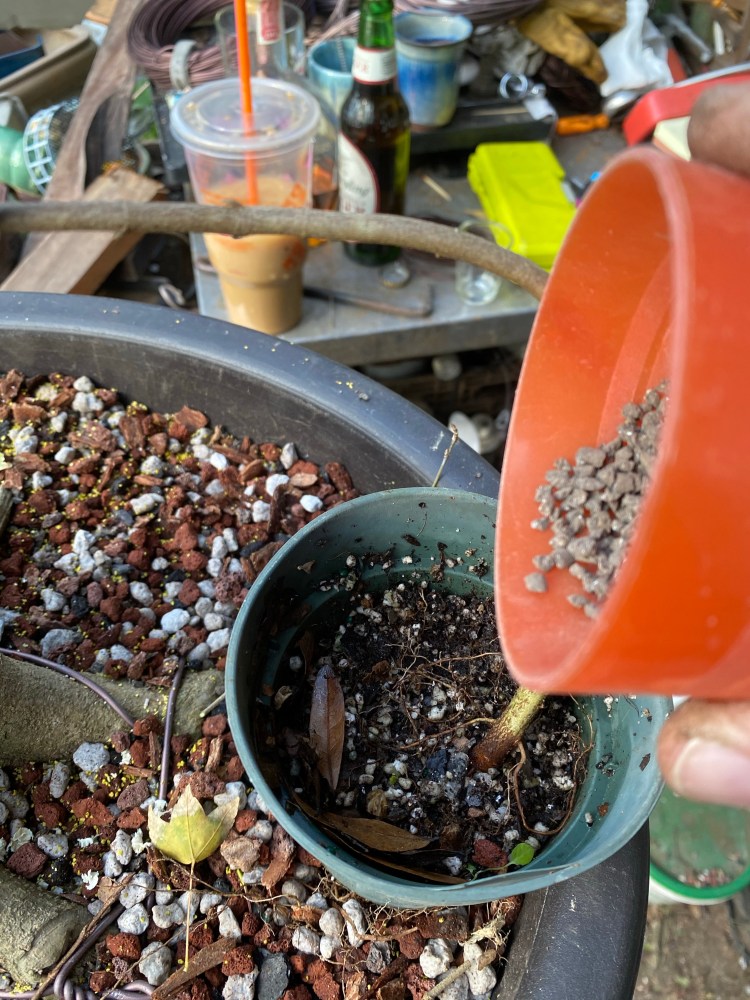 A quick repot into a deeper container since I’ll be putting a graft on it.