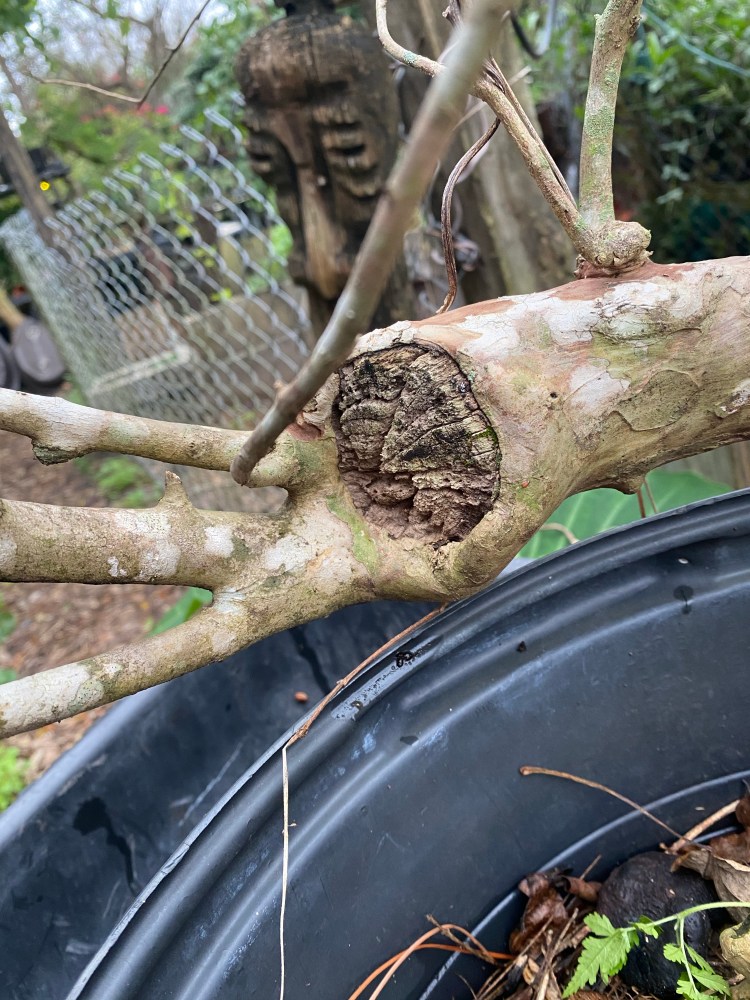 > adamaskwhy posted: “Here’s an exciting new project: A lagerstroemia indica > variety. The bark looks like the “Natchez” cultivar, which would mean big > leaves and a white flower. I’m not sure though so we will have to see when > it wakes up and flowers. I don’t know the exac” >