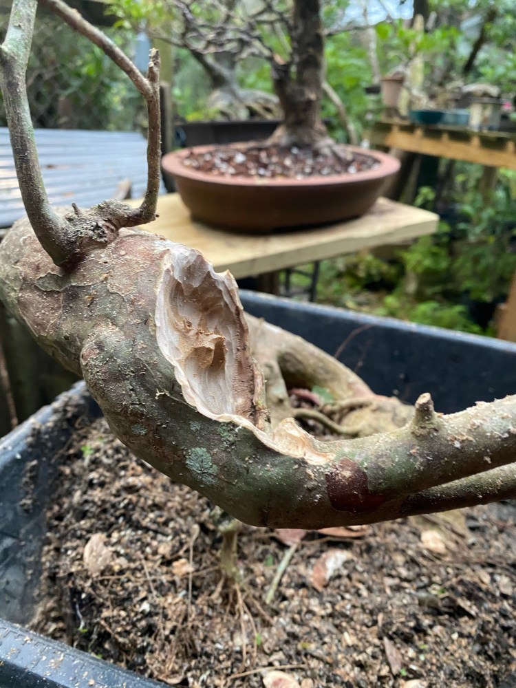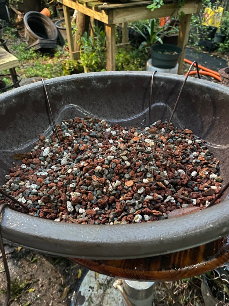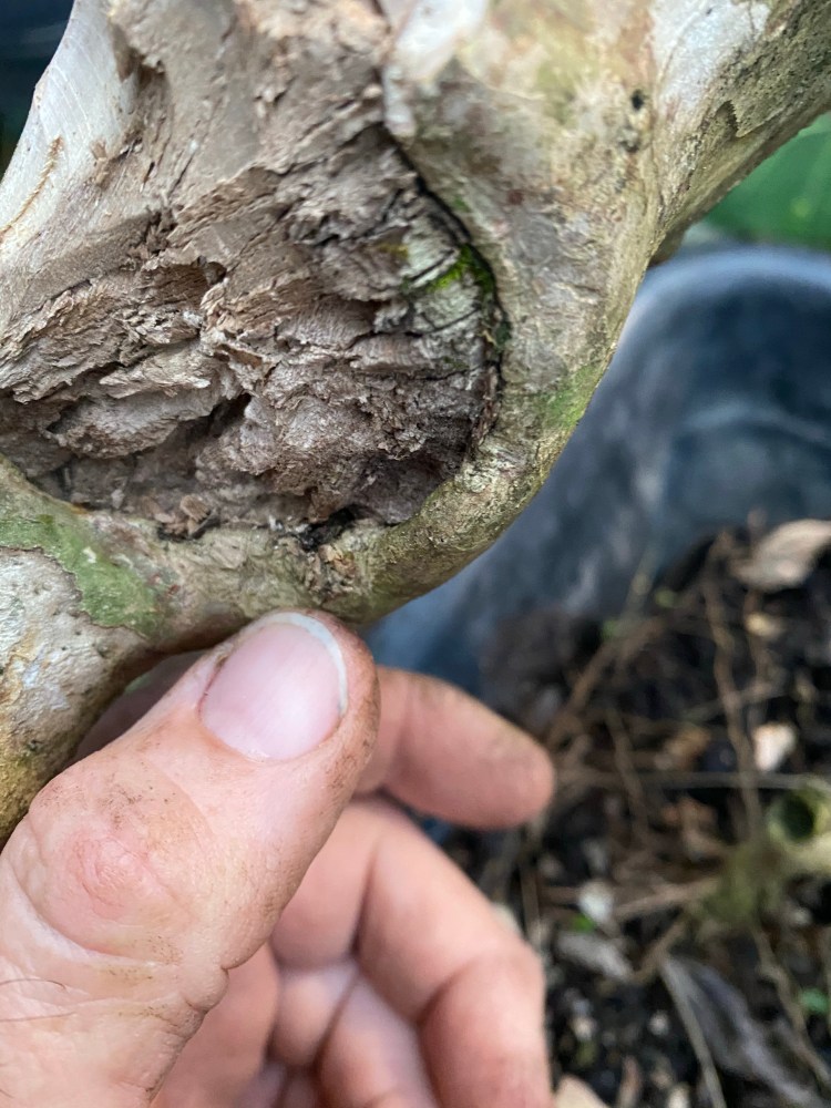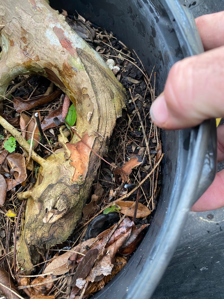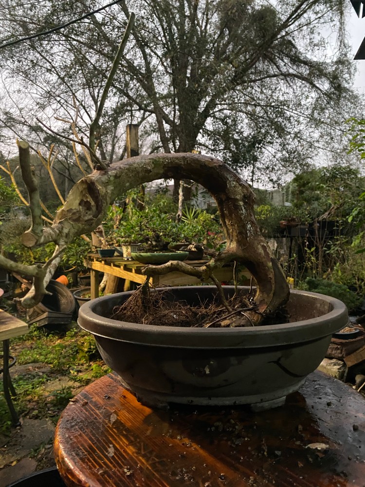 The soil was broken down pretty badly. Good in a deep pot but in a bonsai pot the small particles hinder drainage. Here’s a quote: “it doesn’t matter what your soil is made of, it’s the particle size that helps or hinders drainage”