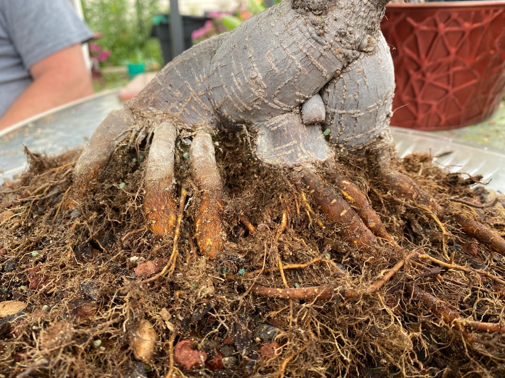 I want a more shallow pot, to spread out those roots and give the nebari room to widen. Let’s see how this one works.