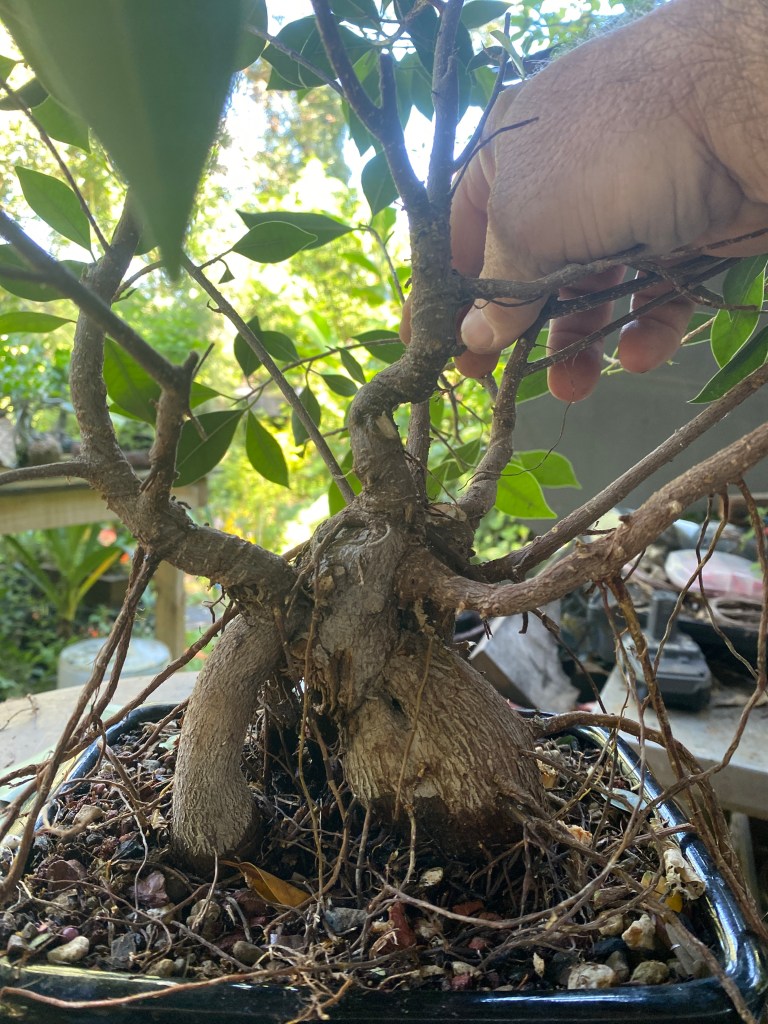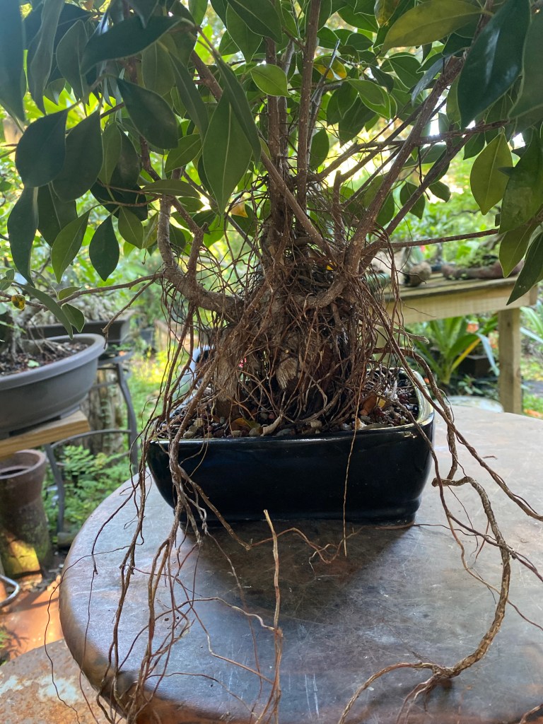It’s well on its way to a specimen, banyan style ficus, worthy of a show. Next year I’ll recommend a wider, shallower pot to help show off the trunk and wide canopy.