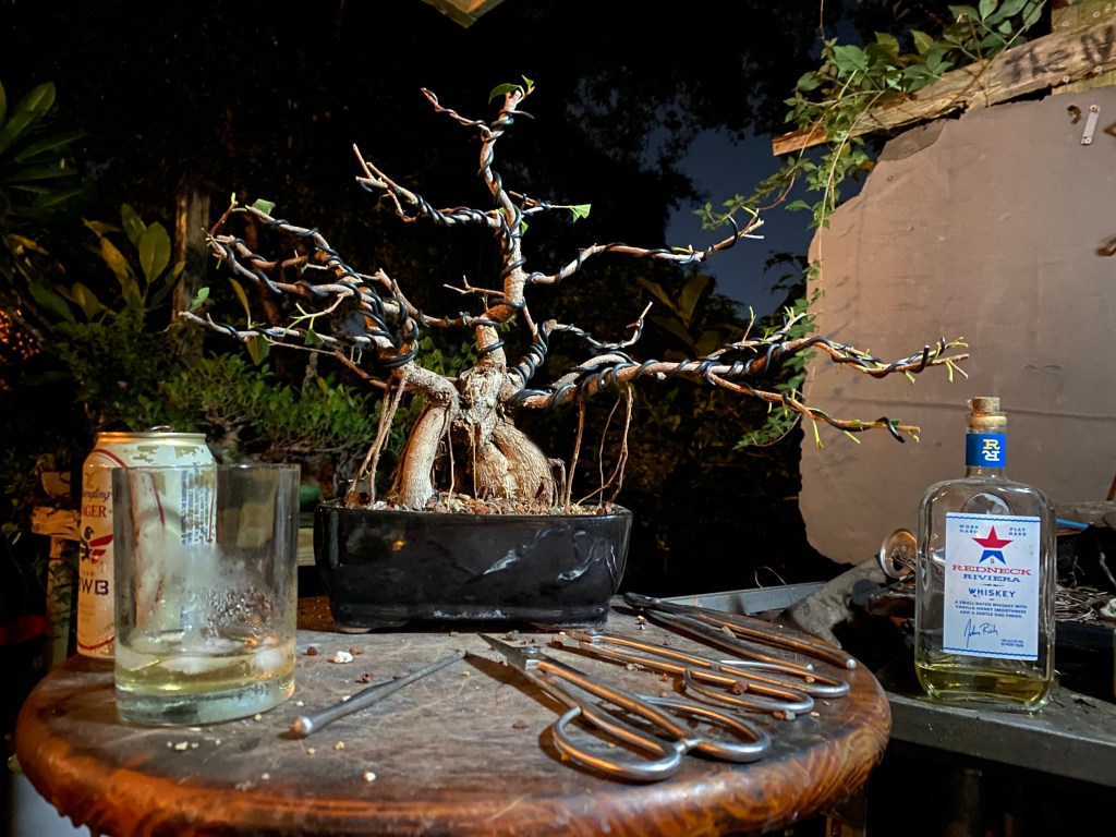 Most of the branches with leaves will be pruned off or shortened as I continue the styling process.