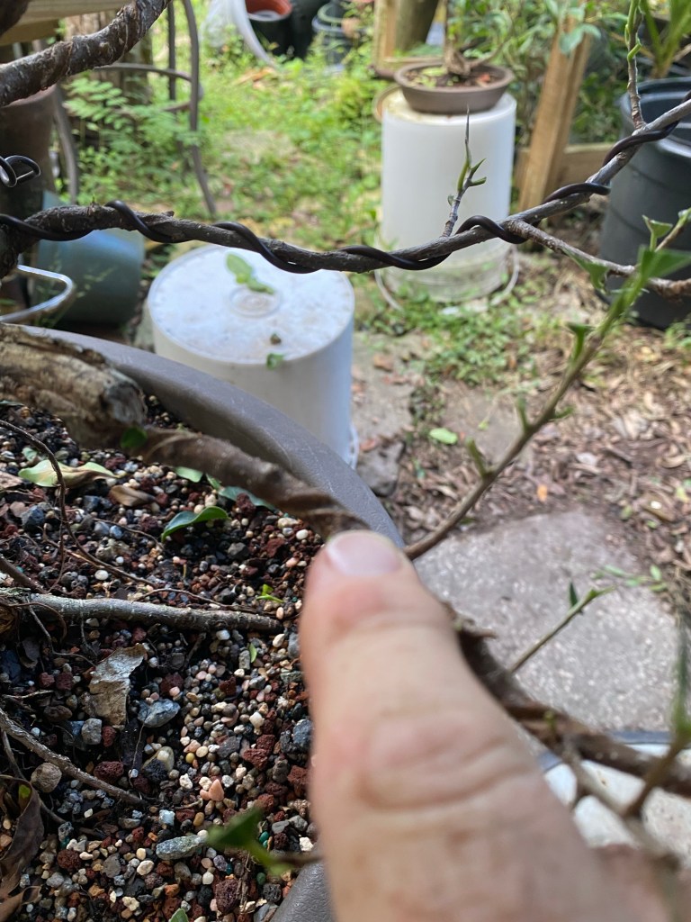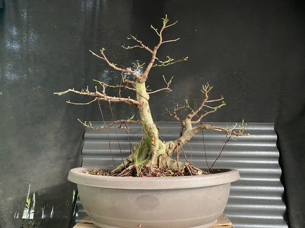 Now, you won’t see wire marks on the real old trees from Japan simply because wire, as we use it today, wasn’t around a hundred years ago for bonsai use. They used clip and grow and tie down methods.