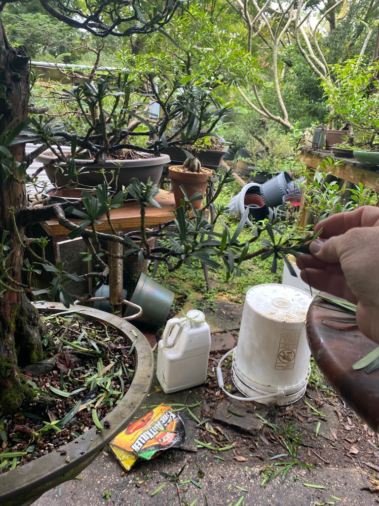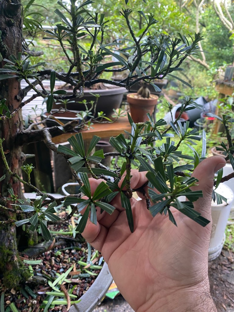It wasn’t as bad as I though. Mostly inside branches severely shaded out by the dense canopy. Podocarpus, though being a full sized tree in nature, are most often used in landscape applications as hedges (they are ignominiously used to hide air conditioning units in la florida quite a bit) because they can be sheared into a dense hedge. They’re used as living fences for this reason too.