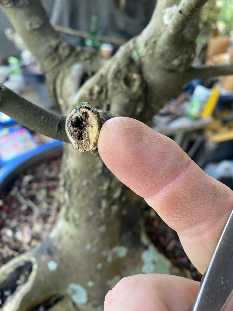 You see how far the rot has infiltrated into the branch? Cut it back more.