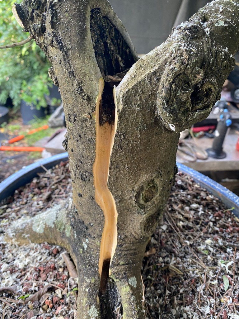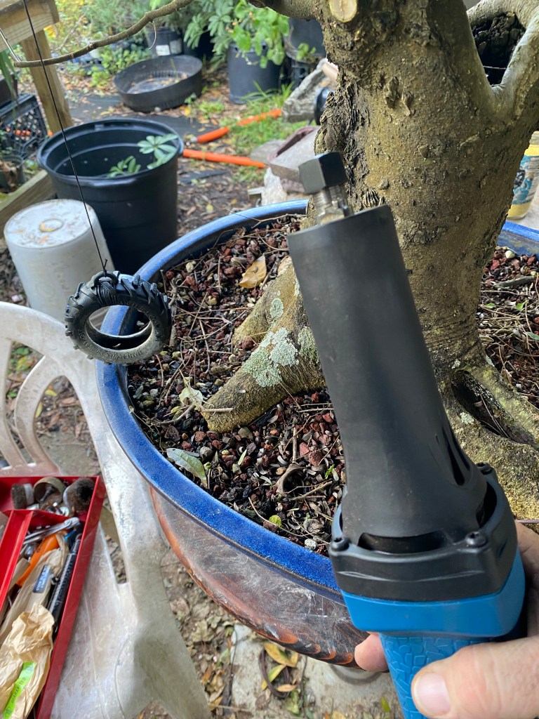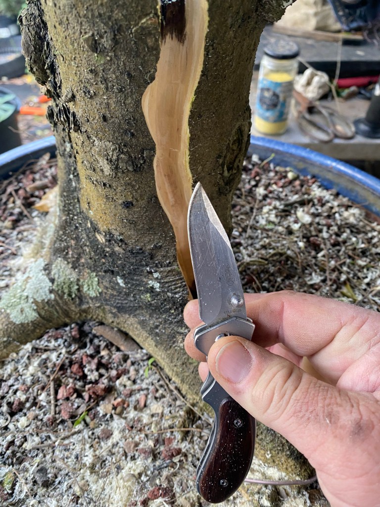 Since I’ve had it, I’ve always wanted to carve it all the way down to the root. but I’ve missed my window for doing that for various reasons: it was going on display, or it needed rest, or it was the wrong time of the year and the sap was flowing to heavily. You need to find the right window to do certain things on deciduous trees, like repotting, pruning, and carving.
