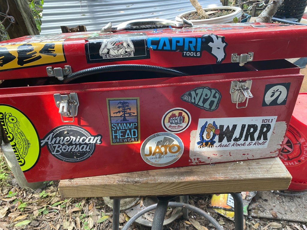My box. You’ll notice all the stickers. I collect them so if you have any, send them my way.