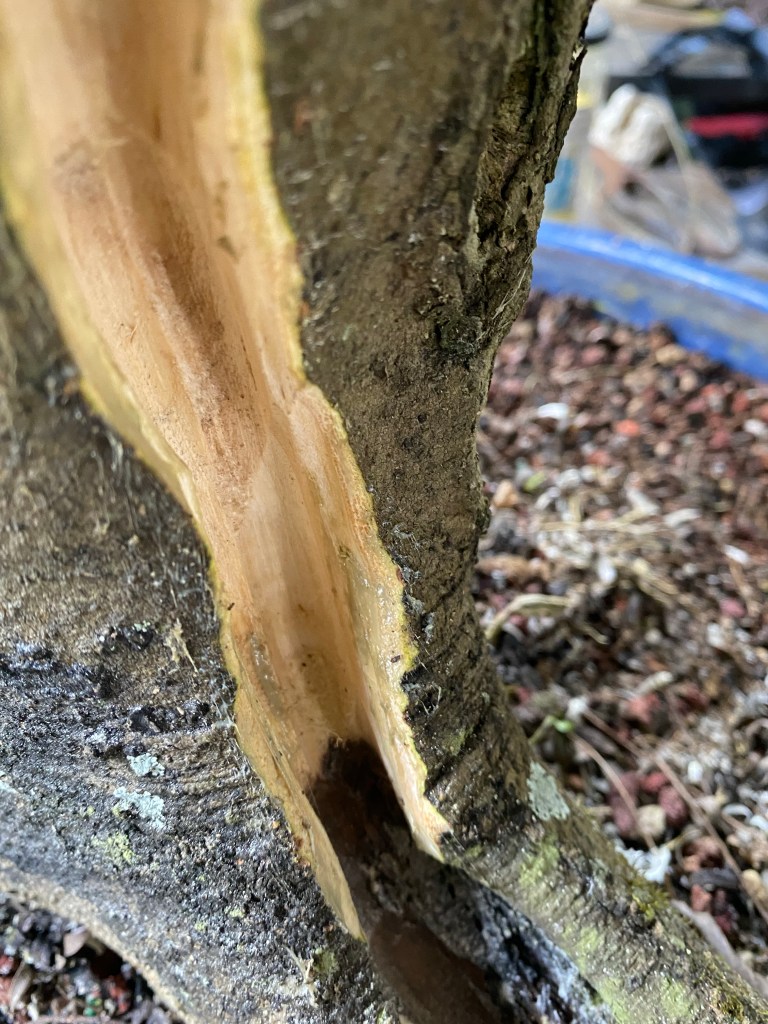But I’ll let it start healing first, and see what happens with the cut edge. I’ve had the tree for many years and I’ve waited that long to do the carving. I can wait a little longer.