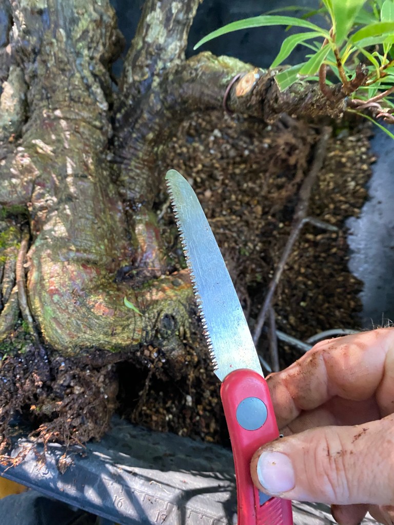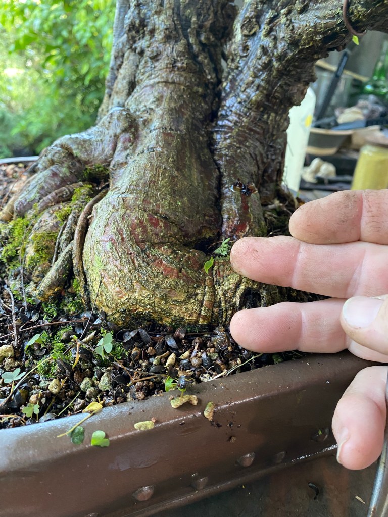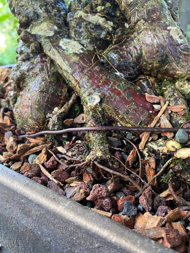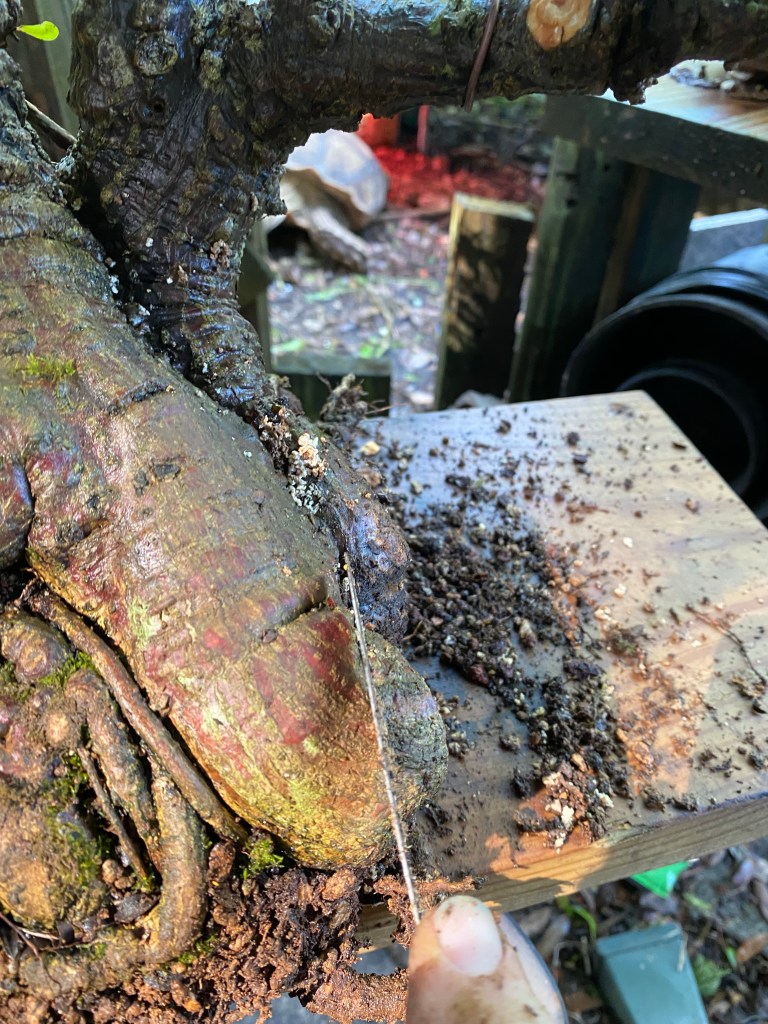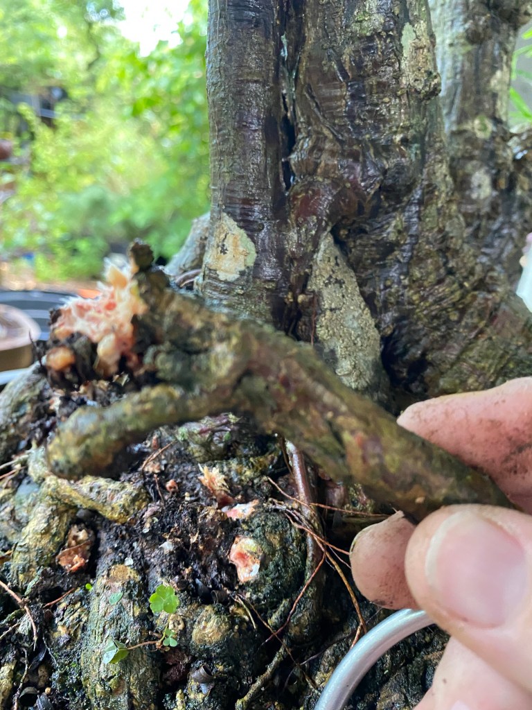 Oxalis roots. One of the most satisfying things about repotting a tree is getting to remove all those recalcitrant root structures that makes weeds so difficult to eradicate.