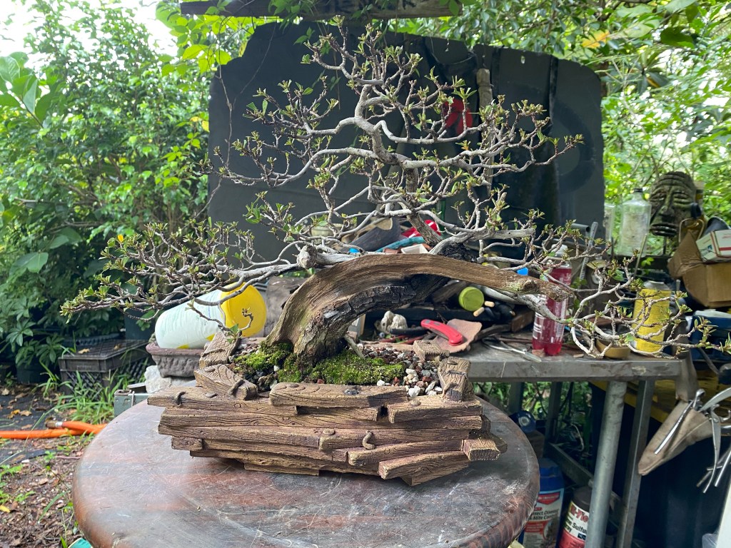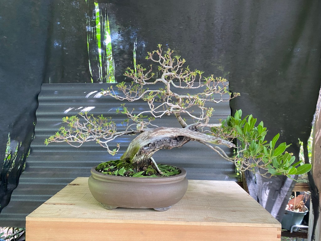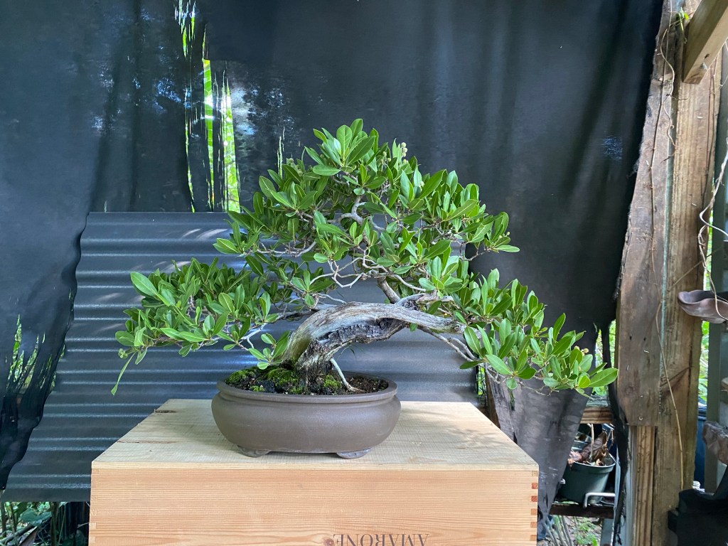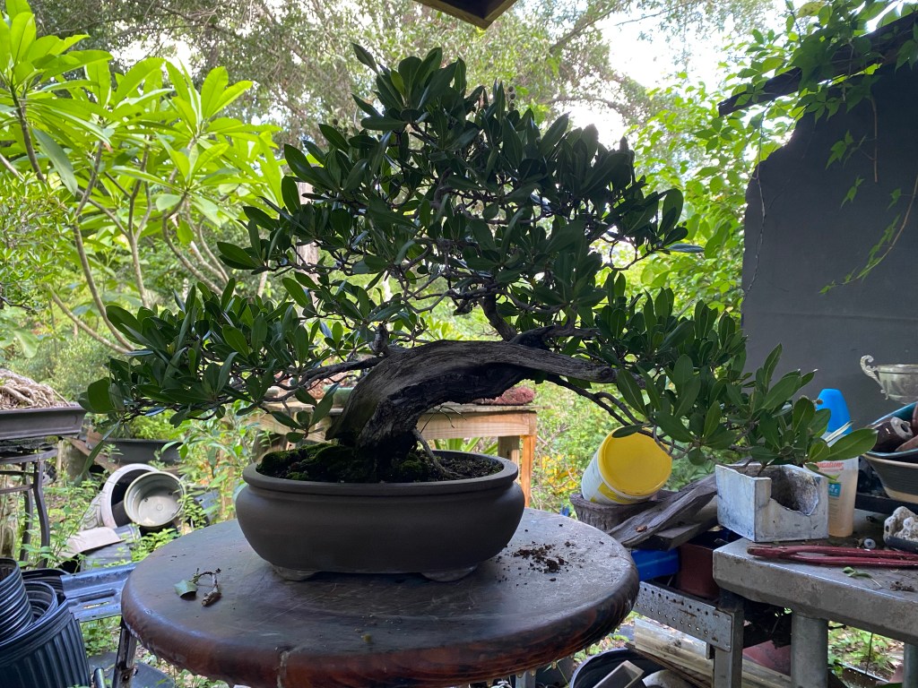 This is Janice’s buttonwood. You’ve seen it before in the post Who doesn’t have a buttonwood in Florida from a few years ago. Since then, it was shown in the 2021 Bonsai Societies of Florida annual convention, and its just gotten better. Janice found a new pot for it at this year’s BSF convention (2022) and that’ll be the main work today.