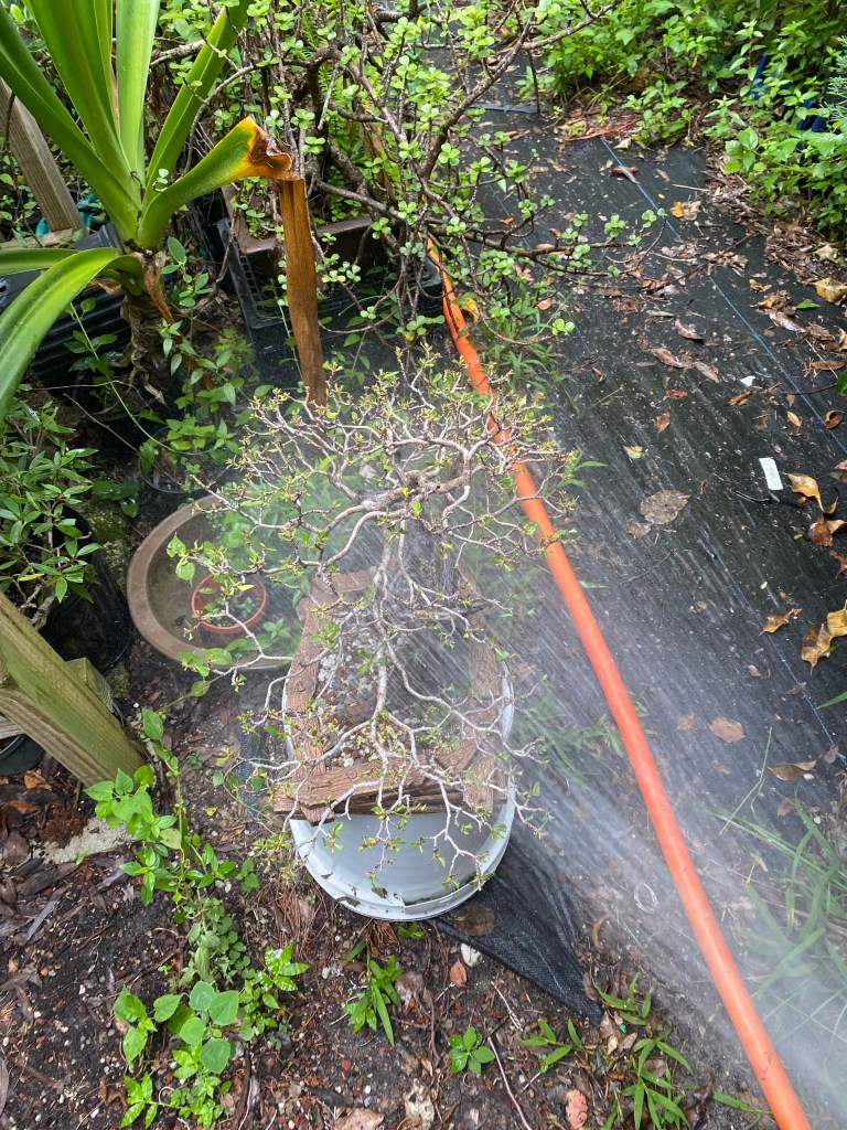 Then, since I’m going to lime sulfur it, I water and make sure to get the deadwood wet.