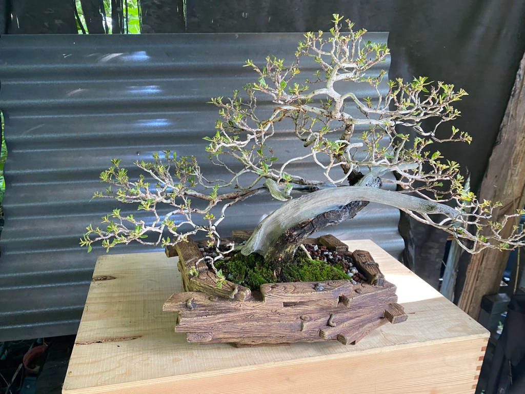 But this tree had been selected for the 2020 BSF Convention exhibit. Unfortunately, that was the year of Covid lockdowns, so the convention was cancelled, and I lost several months due to my own health problems, so that year was skipped. And the tree was shown the next year, 2021. So I skipped that year too. Sometimes getting a tree ready for exhibition can really stress a tree out.