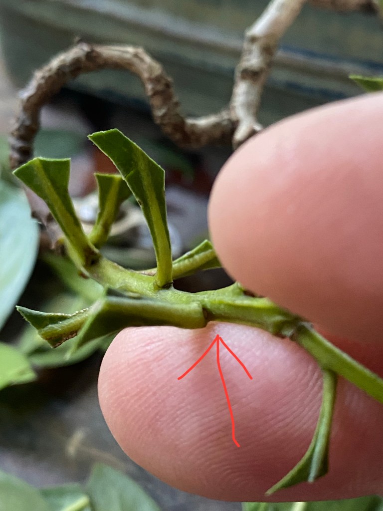 I’m just starting to cut the leaves off. Aha! Defoliation. What, why, how dare I!