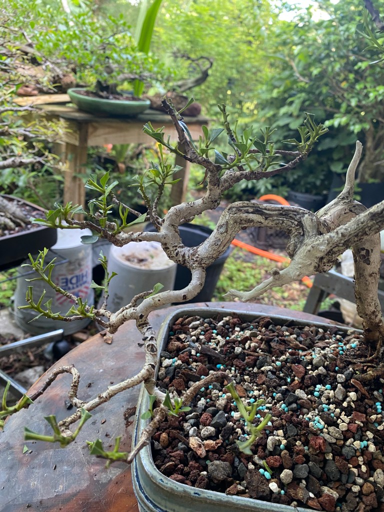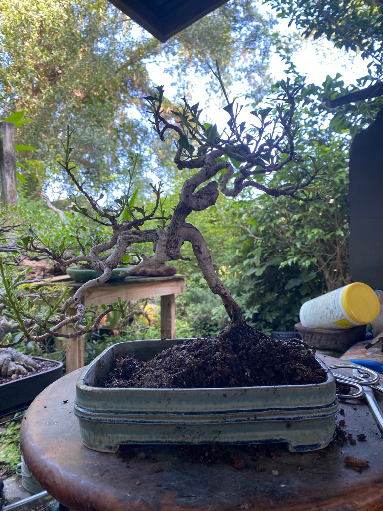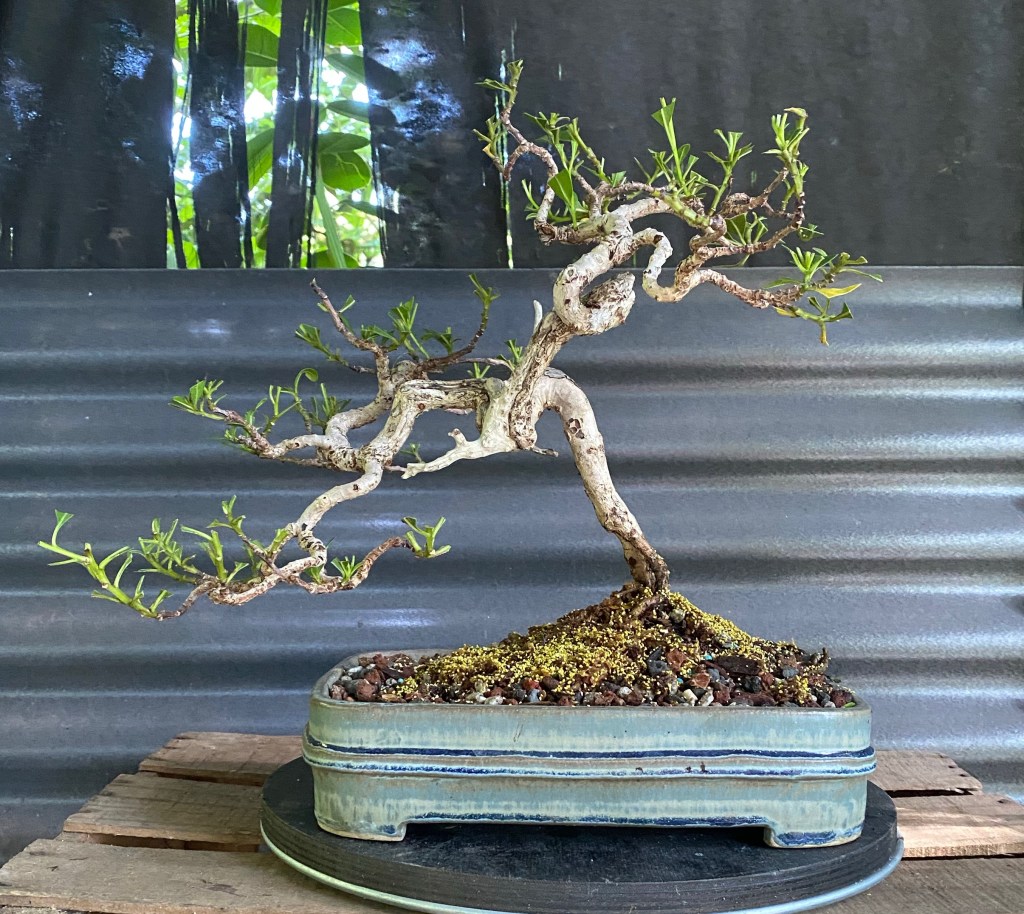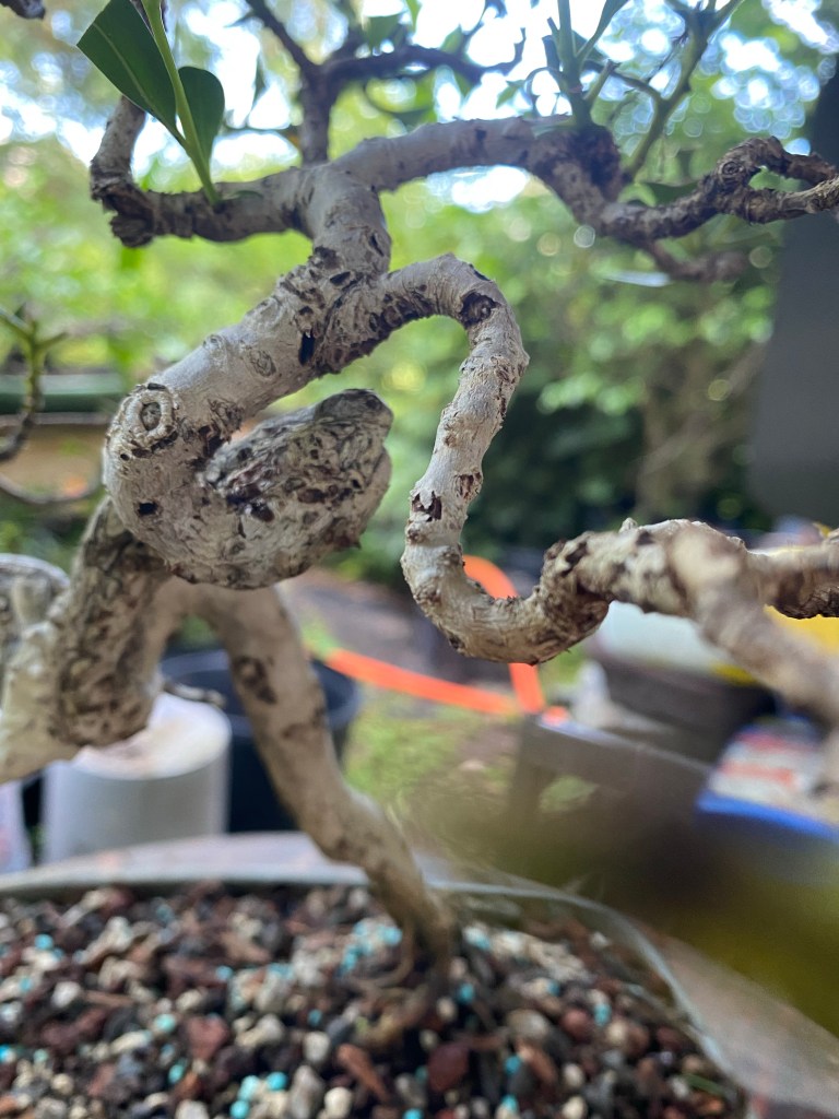 The style this tree is mimicking is how a buttonwood grows naturally in the Florida Keys, twisted, gnarly.