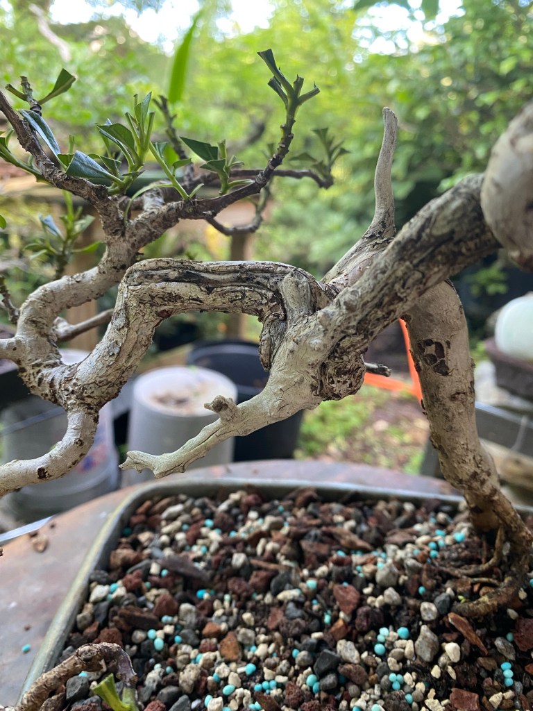 This is perfect timing. I’m about to repot an older buttonwood originally designed by Mary Madison. It has gone thru several owners and now resides on my bench. On an opinion from Mike Lane I’m going to tilt it up a bit and set it at a new angle so I’ll be losing some roots from the hi side. I was unsure about how much defoliating to do to in order to reduce stress as much as possible. I feel more confident now. I won’t remember the names of the hormones but I will remember what they do and how each functions.