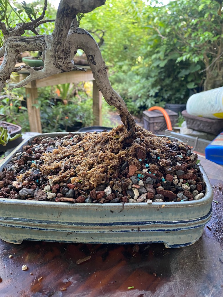 And, of course, I fertilize, add some prophylactic systemic insecticide for chili thrips, and add some sphagnum to the soil top, and then pre-emergent weed preventer.