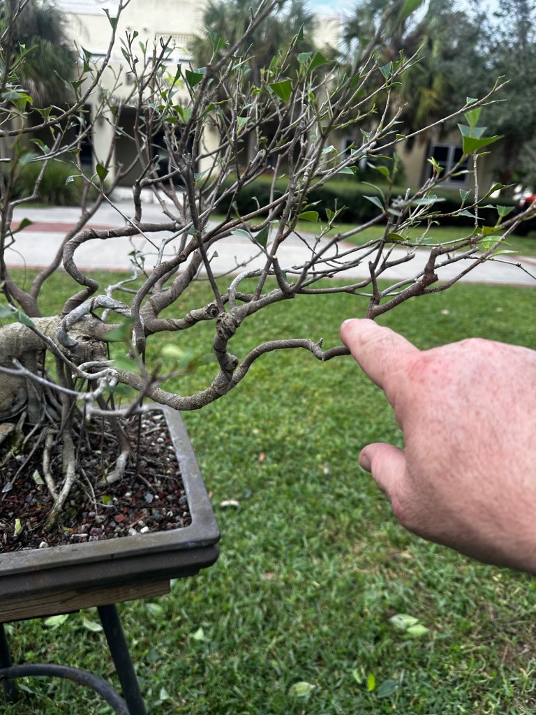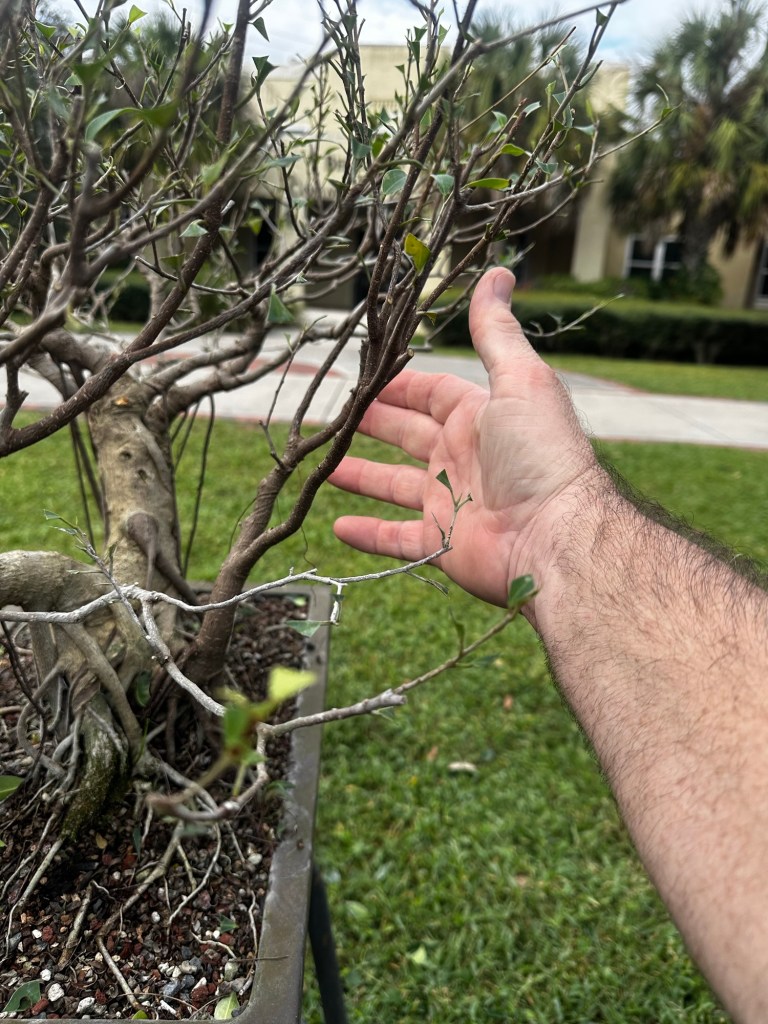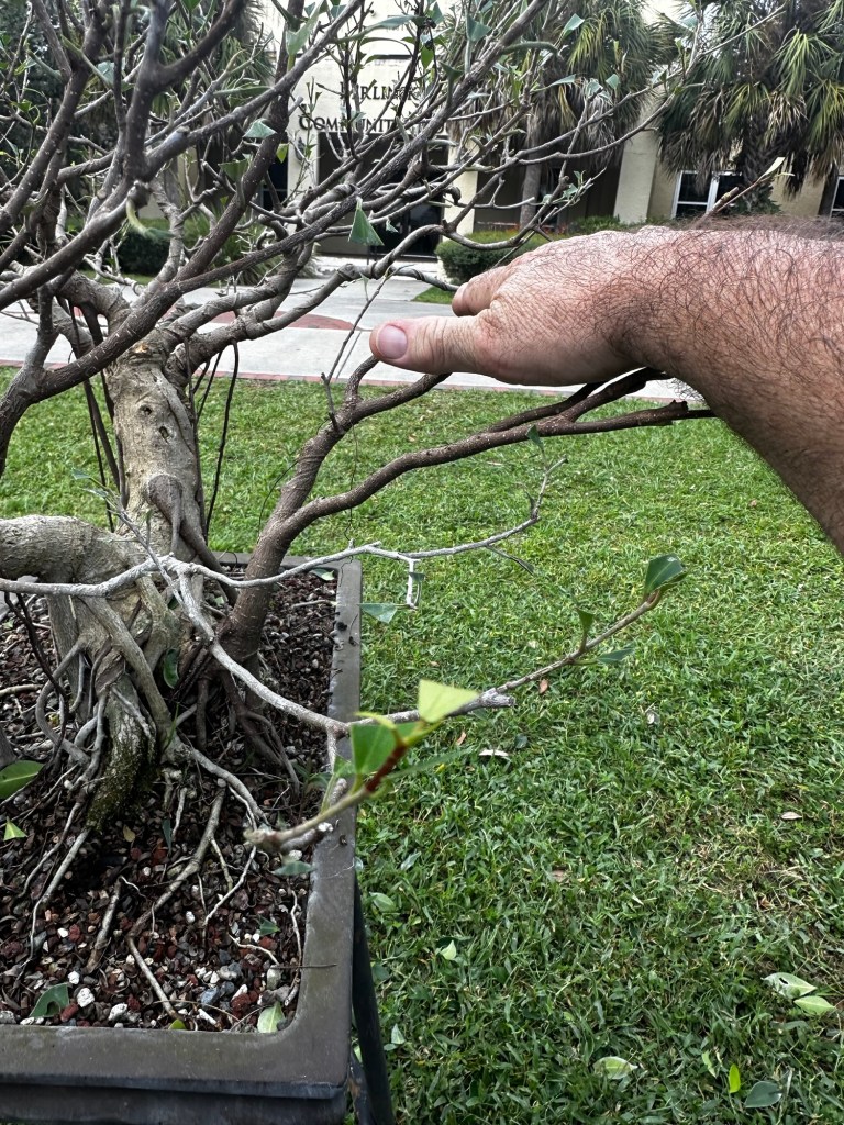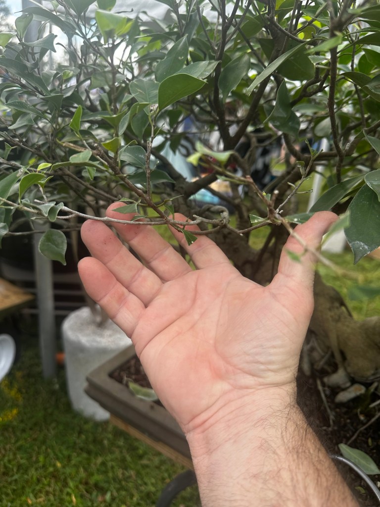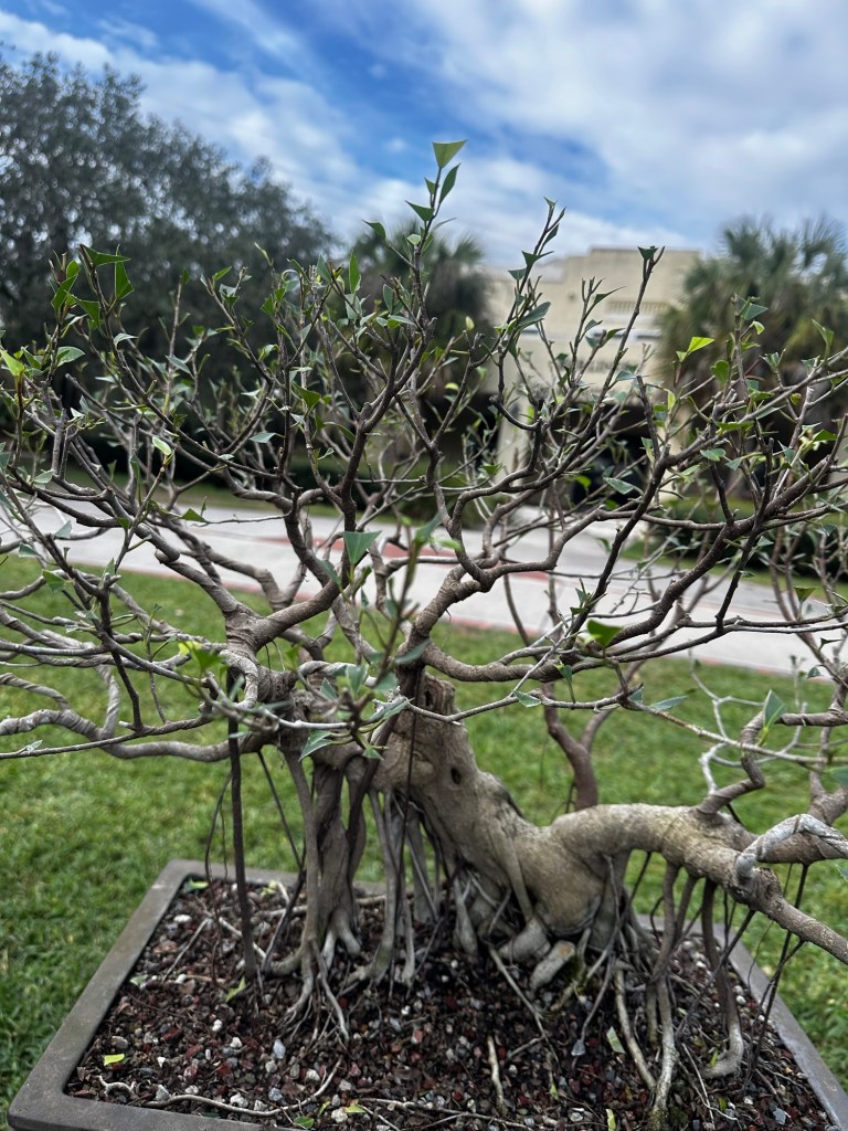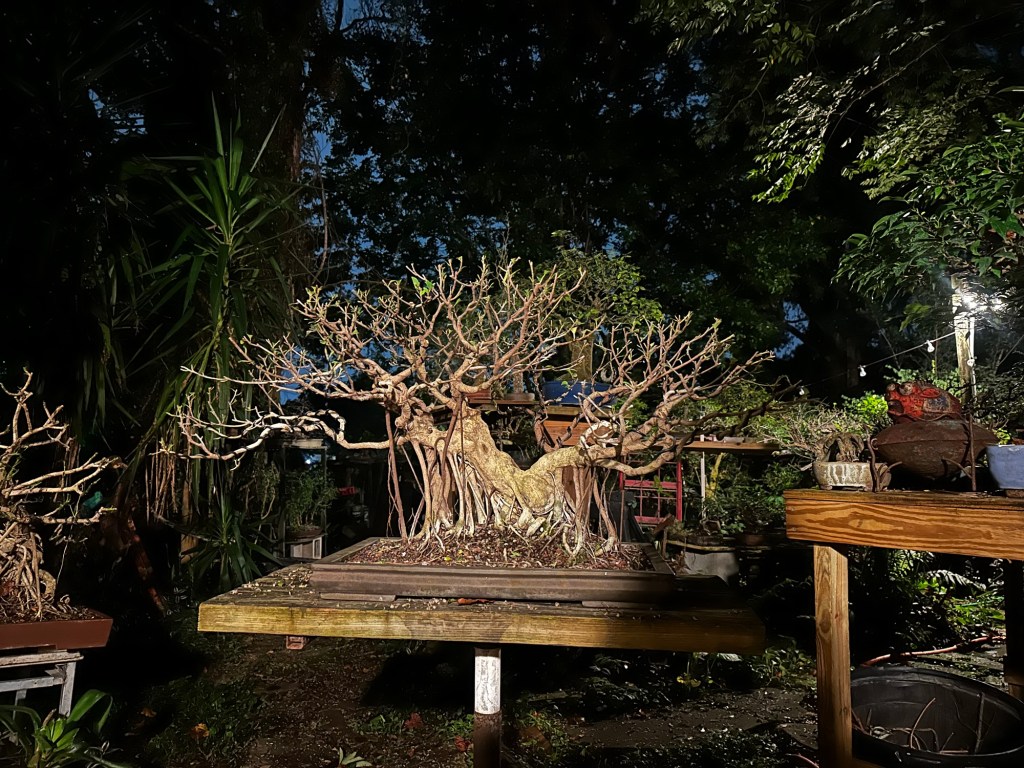 This year I brought a Ficus microcarpa. Just the plain species. Not tiger bark or green island or melon seed. Here’s how it looked after I cut it to a line way back in 2013.