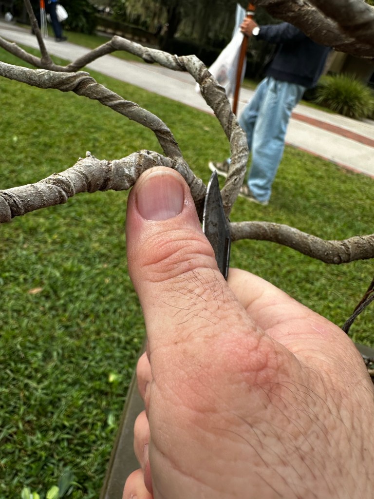 I usually use two hands to bend, but that’s hard to hold a camera, and bend. Pretend my left hand is steadying the branch.