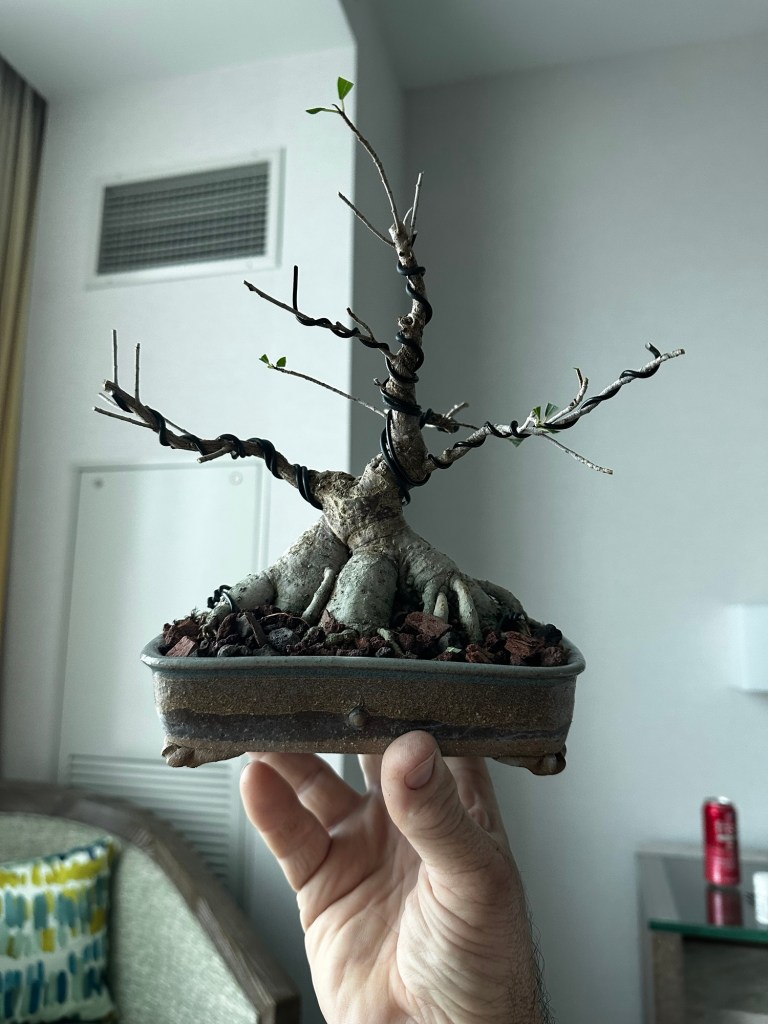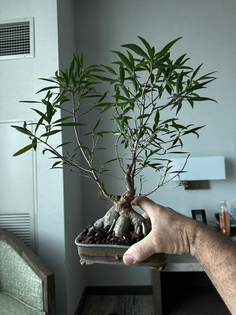 And the tree. A willow leaf fig. Ficus salicaria. What’s a more Florida tree than the one bonsai species that was first discovered here. And not too far from this place. The very first bonsai made from the willow leaf still exists and lives down on the east coast of La Florida. Very far from the Florida:Georgia line.